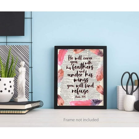 Psalms 91 4 Wall Art Prints Unframed 8x10 In Bible Verse Decor With Christian Sayings For Home Office Pictures With God Quotes And Positive Massage He Will Cover You